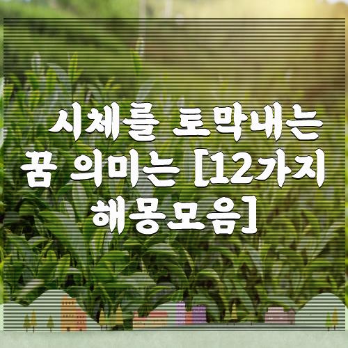 이런 꿈해몽은 특히 해몽 1: 꿈에서 시체를 토막내는 꿈... 의미로 해몽되는데요, 유사 꿈 12가지 상황별 디테일 해몽 보시겠습니다.