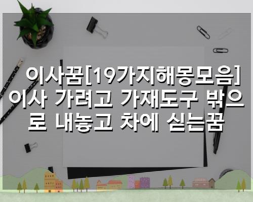 꿈해몽 내용은 이사 꿈, 이사 가려고 가재도구 밖으로 내놓고 차에 싣는꿈 여러가지 꿈해몽풀이전체적 정리합니다.