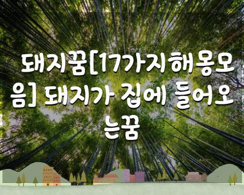 이런 꿈해몽은 특히 돼지가 집에 들어오는꿈은 어떤 도움의 손길이 있어 재물이 생기고 가정이 풍요로워질 것을 암시한다. 새로 시작하는 사업이 있거나 구입하려 는 부동산이 있다면 자산 또는 코인/부동산 자산이 될 것으로 보아도 좋다.... 의미로 해몽되는데요, 유사 꿈 17가지 상황별 디테일 해몽 보시겠습니다.