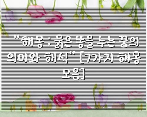 "해몽 : 묽은 똥을 누는 꿈의 의미와 해석" 해몽 모음